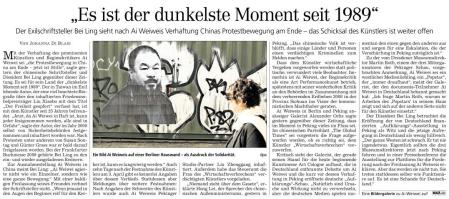 貝嶺:裸體公民艾未未 (China Times, also in Ming Pao)