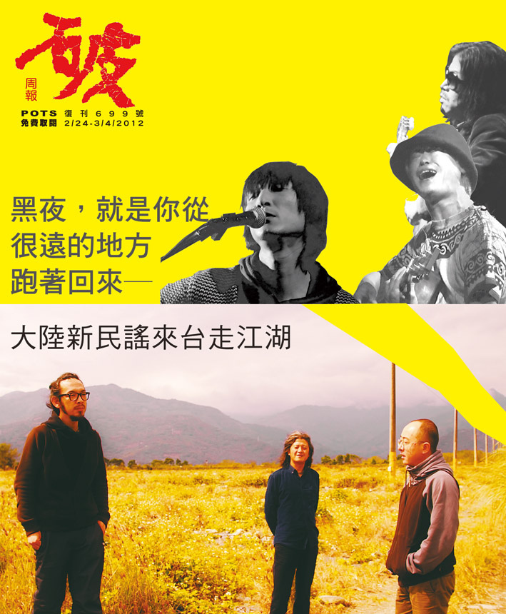 Cooperation with singers/ songwriters from Mainland China is increasing; there were many concerts by Mainland singers/ songwriters in Taiwan in February 2012. These artists were introduced in the magazine POTS (Weekly supplement Nr. 699, Feb. 24 – March 4, 2012, p. 14/15)
