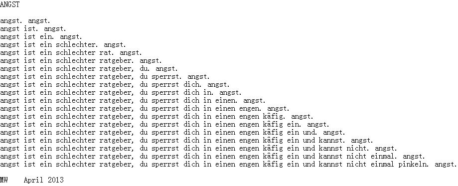 I am currently translating a long poem by Li Bifeng into English, and have translated several small texts into German. Two of these will appear in the literary journal Wienzeile this summer in bilingual fashion. The artist Sara Bernal is supporting the reading on June 3rd with a display of paintings.