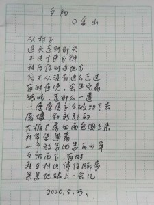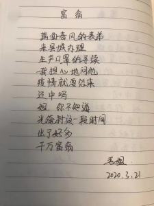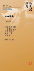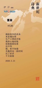 Chen Gengqiao, born 1971 in Mianyang, Sichuan. Farmer, worker, media company manager, technology company founder. 《新诗典》小档案:陈庚樵:四川绵阳人,1971年生。从事多种职业,农民,工人,传媒公司老板,科技公司创业者等。读中学时开始喜欢写诗。有零星诗歌和中篇小说发表,写作纯属自娱自乐。今年疫情间接触口语诗,才知道以前给自己看,小情小我的诗应该放弃了,口语诗能表达更多的社会责任感,更多的人文情怀。Chen Gengqiao, 1971 geboren in Mianyang, Provinz Sichuan. Bauer, Arbeiter, Medienmanager, Gründer einer technischen Firma. Kam erst heuer in der Viruszeit mit Gedichten in Alltagssprache in Berührung.