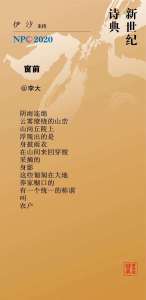 发表在 2020, 20th century, 21st century, Middle Ages, NPC, poetry, September 2020, Translations, Uncategorized, 新世纪诗典 | Leave a Comment »