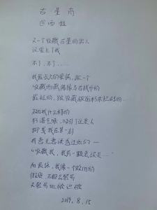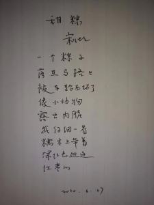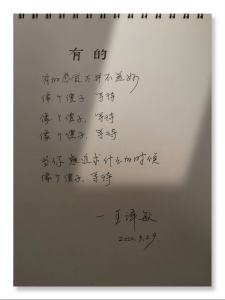 张明宇的《诗》简直是一首两重奏,一方面写我与父亲,另一方面写作诗之道。两者共鸣之处即真诚和真实。做人和作诗,一个道理。