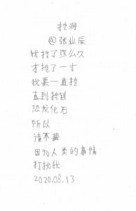 Shi Xuan, born in 2009, goes to school in Qingdao. She likes to read, write, dance and play the Guzheng, most of all she likes poetry. She has published in magazines and online media and has won the national “Changjia” prize for young poets. 《新诗典》小档案:石璇,女,2009年9月出生,现就读于青岛市虎山路小学五年级二班。 是一个活泼开朗的女孩,喜欢阅读,写作,古筝,舞蹈,更爱读诗,写诗。诗歌发表在《流派诗刊》《陕西诗词》《农村孩子报》等报刊和鸿羽之光、江南传媒等微信公众号平台,入选“每周小诗星”“中国百名优秀少年诗人”,获得第二届“长嘉”全国少儿诗歌大赛优秀奖。