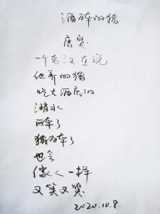 Xiao Xia, orig. name Xie Zihong, born in the 1980s in Laibin, Guangxi. Writes poetry since 2017, has published in local and foreign magazines and anthologies. 《新诗典》小档案:小虾,原名谢字红,女,广西来宾人,80后,汉族,2017年开始写诗。主要作品有《买烟》《殉情者》《敬》《查房》等,作品发表于《新世纪诗典》《AAA诗歌排行榜》《麒麟》《文学桂军二十年》《广西当代诗歌集》(俄语版)《中国口语诗歌年鉴》(2019卷)等。