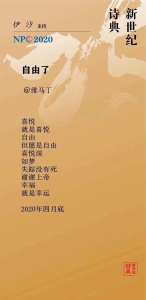 发表在 2019, 2020, 2021, 20th century, 21st century, April 2020, August 2020, December 2019, December 2020, February 2020, January 2020, January 2021, July 2020, June 2020, March 2020, May 2020, Middle Ages, NOVEMBER 2020, NPC, OCTOBER 2020, poetry, September 2020, Translations, Uncategorized, 新世纪诗典 | Leave a Comment »