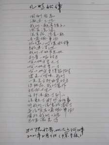 Song Zhuangzhuang, geb. 1988, Akupunktur-Arzt. “Freunde fragen mich, was ich in der Arbeit mach? Reden mit alten Leuten. Heilung kommt hauptsächlich von Reden.” Mitherausgeber einer Anthologie von DichterInnen, die in den 1980er Jahren geboren sind. 《新诗典》小档案:宋壮壮,1988年出生,针灸科大夫,“朋友问我上班干什么/陪大爷大妈们聊天/疗效主要靠聊”。《那些写诗的80后》编委。