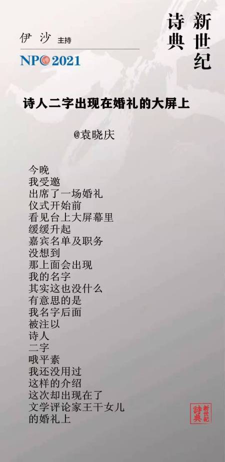 DICHTER ERSCHEINT AUF BILDSCHIRM BEI HOCHZEIT – 袁晓庆 Yuan Xiaoqing