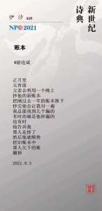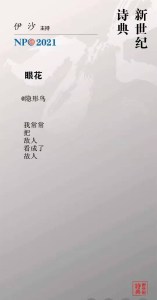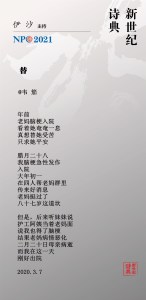 发表在 1960s, 1966, 1970s, 1980s, 1989, 1990s, 2000s, 2010s, 2020, 2021, 20th century, 21st century, Antique times, August 2021, July 2021, Middle Ages, NPC, poetry, Translations, Yi Sha, 新世纪诗典, 伊沙 | Leave a Comment »