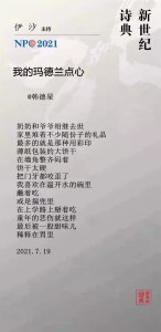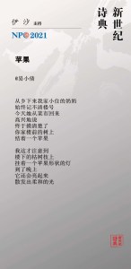 发表在 1990s, 2000s, 2010s, 2011, 2012, 2013, 2014, 2015, 2016, 2017, 2018, 2019, 2020, 2021, 20th century, 21st century, November 2021, NPC, poetry, Translations, Yi Sha, 徐江, 新世纪诗典, 沈浩波, 伊沙 | Leave a Comment »
