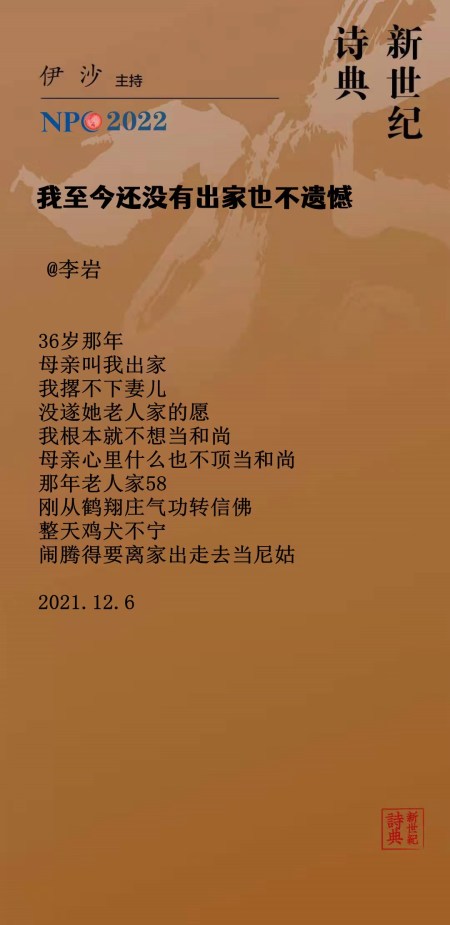 BIN BIS HEUTE KEIN MÖNCH UND BEREUE ES NICHT – 李岩 Li Yan