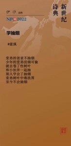 0225况禹点评《新诗典》蓝狐《学抽烟》:“堂弟”可怜,抽树叶抽到中毒。我也没听过这样学抽烟的。早年倒是听老烟鬼们说过抽树叶,但那是在有烟瘾找不到烟叶的情况下,据说还有抽废茶叶的。一上来学抽烟就敢抽这些,还是初次听到。可见世界之大,凡事都没有定规。本诗算是提供了又一个例证。我在没什么烟瘾的时候抽过的最烈的烟是莫合烟。一口吸进去,如吃芥末,眼泪能辣出来。不过倒不讨厌,迄今也依然能应付,至少比关东烟更对路子。