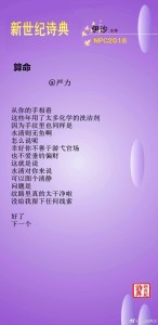 10 years ago, Yi Sha 伊沙 began to present one poem each day on Chinese social media. This has become a representative collection of new poetry in the new century, aptly named NPC, New Poetry Canon 新世纪诗典.
