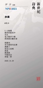 发表在 1960s, 1970s, 1980s, 1990s, 2000s, 2008, 2010s, 2020s, 2022, 20th century, 21st century, December 2022, May 2008, Middle Ages, NPC, poetry, September 2022, Translations, 新世纪诗典 | Leave a Comment »