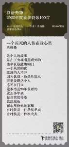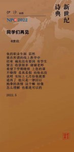 发表在 1960s, 1962, 1970s, 1980s, 1990s, 2000s, 2010s, 2020, 2020s, 2021, 2022, 20th century, 21st century, July 2022, June 2022, May 2022, Middle Ages, NPC, poetry, Translations, 新世纪诗典 | Leave a Comment »
