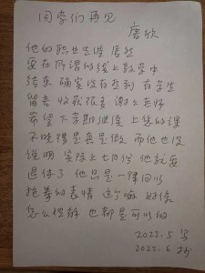 况禹点评《新诗典》唐欣《同学们再见》:老唐退休,又一个好老师告别讲席了。这是学生之憾,也是教育之憾,但对诗人,或许倒是复归健康和大自由的一个契机。本诗一如既往地克制,再次显示出了“唐氏口语”节制、意蕴无限的魅力。