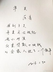 标签:bank, family, history, holiday, loan, memory, money, moon calendar, new year, NPC, spring festival, Yuan Yin, 原音, 新世纪詩典