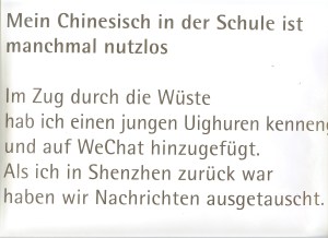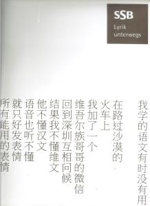 Eight years ago I began to look for NPC poems each day, translating more and more into German and English. In 2014 my own poetry appeared on NPC for the first time. After two books of Yi Sha’s poetry, I have now published, along with Juliane Adler, the first book of a 4-volume-series of NPC poetry in Chinese and German. Here are the contents: