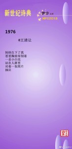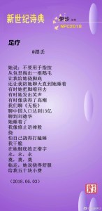 10 years ago, Yi Sha 伊沙 began to present one poem each day on Chinese social media. This has become a representative collection of new poetry in the new century, aptly named NPC, New Poetry Canon 新世纪诗典.