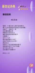 发表在 2000s, 2010s, 2018, 20th century, 21st century, April 2018, June 2018, NPC, poetry, Translations, Uncategorized, 新世纪诗典, 沈浩波 | Leave a Comment »