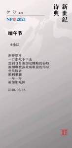 伊沙推荐语:60后传奇继续上演,《新诗典》节庆日首次由"新人"担纲,于端午节推荐内蒙古徐厌之《端午节》,应景又不应景,来自于诗人侯马的助攻。本主持四川绵阳推荐。