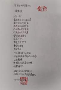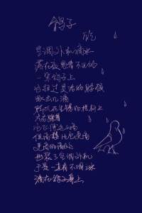 伊沙推荐:标准而规范的一首现代诗,一看就训练有素,适合初入典,进来了就不妨冲动些、打破些、不正确。