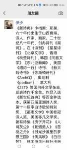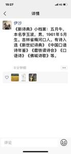 伊沙推荐:什么情况?我不知道,也不会打听,诗人怎么写,我就怎么读,瞧瞧,光是《新诗典》的诗,就是如此的千姿百态,恐怕不是庸人们信口开河的"小圈子","无风格"吧。我们写,你们说。