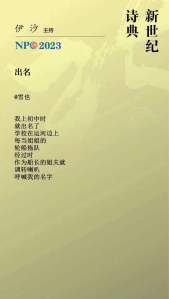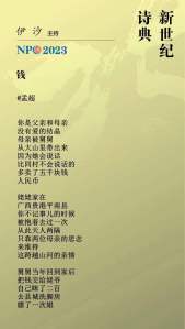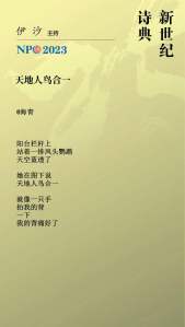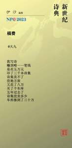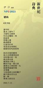 发表在 1970s, 1980s, 1990s, 2000s, 2010s, 2020, 2020s, 2021, 2022, 2023, 20th century, 21st century, December 2022, February 2023, January 2023, Middle Ages, November 2022, NPC, October 2022, poetry, September 2022, Translations, 新世纪诗典 | Leave a Comment »
