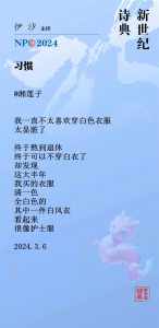 新世纪诗典第12季,NPC2月27日,4347首,1318人。邓胡子(江苏)日