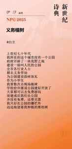 发表在 1970s, 1980s, 1990s, 2000s, 2010s, 2020s, 2025, 20th century, 21st century, April 2025, January 2025, Middle Ages, NPC, poetry, Prehistoric times, Translations, 新世纪诗典, 沈浩波 | Leave a Comment »
