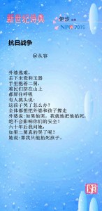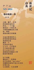 10 years ago, Yi Sha 伊沙 began to present one poem each day on Chinese social media. This has become a representative collection of new poetry in the new century, aptly named NPC, New Poetry Canon 新世纪诗典.