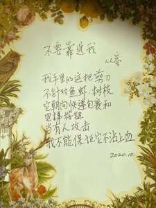 徐江点评《新诗典》从容《不要靠近我》:清晰、明白、且凛然有脾气。凸显女性个性的诗,最忌彰显特色时剑走偏锋,跑偏成乖戾。本诗恰恰相反,有着健康的锐利和力度。