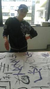Liang Bo setzt neckisch seine Schirmkappe auf,