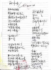 AAA (3A) 三个A, geb. in den 70er Jahren in Laibin, Provinz Guangxi. Dichter, Schriftsteller, Herausgeber. Erhielt 2015 den Li-Bai-Förderpreis. An Qi 安琪, eigentl. Huang Jiangpin, geb. im Februar 1969 in Zhangzhou, Provinz Fujian. Dichterin, Schriftstellerin, Herausgeberin. Lebt in Peking. A Wu 阿吾, “Dichter und Denker”. 1965 in Chongqing geboren. 1988 Mag. phil. Journalist und Redakteur bei Tageszeitungen, 1994 bis 2005 beim TCL-Konzern. Bei Dao 北岛, eigentl. Zhao Zhenkai. Geb. am 2.8. 1949 in Peking. Gründete Ende 1978 mit Mang Ke die Zeitschrift Jintian (Heute), zur Zeit der Demokratie-Mauer in Peking. Nach dem Massaker von 1989 im Exil. Seit 2007 Professor in Hongkong. Cai Xiyin 蔡喜印, geboren 1966, Hochschulabschluss 1989. Lebt in Hefei, Prov. Anhui. Büroangestellter. Poesieliebhaber über 50. Caiwong Namjack 才旺南杰, männlich, kommt aus Naqu in Tibet. Chun Sue 椿树, geb. 1983 in Beijing, stammt aus Shandong. Nach dem Welterfolg ihres Romans “Beijing Doll” war sie auf dem Cover von Time Magazine. Lebt mit Mann und Kind in Berlin. Eryue Lan 二月蓝, weibl., 1967 in Chongqing geboren. Lokale Regierungsbeamtin. Veröffentlicht seit 1989 in Zeitungen, Zeitschriften etc. Gao Ge 高歌, männl., eigentl. Zhang Chao, im Juni 1980 geb. in Tengzhou, Prov. Shandong. Gehört zum Kreis um die Zeitschrift “Kui” 葵 (‘Sonnenblume’) in Tianjin. Geng Zhankun 耿占坤, geb. im Chaidar-Becken in Qinghai, aufgewachsen in der nordwestlichen Hochebene, stammt aus Zhezhou in Henan. Lebt als Schriftsteller und Verleger in Qinghai. Huang Hai 黄海, geb in den 70er Jahren. Veröffentlichte Essays, Kurzgeschichten, Erzählungen und Gedichte. Lyrik-Preise und Auszeichnungen. Lebt in Xi’an. Huang Xiang 黄翔, geb. 1941 in Guidong, Prov. Hunan. Dichter und Kalligraph, führender Repräsentant der Guizhou-Schule. Ab 1978 Aktionen an der Demokratiemauer in Peking. Immer wieder inhaftiert, lebt seit 1995 im Exil in den USA. Huzi 虎子, eigentl. Zhou Haitao. 1962 geb. in Henan, lebt in Zhengzhou. Zuerst Soldat, später Regierungsbeamter. Publizierte Gedichte in Zeitschriften und Anthologien. Jian Tianping 简天平, weiblich, Angestellte in Beijing. Jiang Erman 姜二嫚, weibl., geb. am 26.12.2007 in Shenzhen. Jiang Xinhe 姜馨贺, weibl., geb. am 31.5.2003 in Shenzhen. Betreibt mit ihrer kleinen Schwester Jiang Erman zusammen eine Internet-Plattform für ab 2000 geborene AutorInnen. Jiang Xuefeng 蒋雪峰, männlich, geb. 1965 in Jiangyou, Provinz Sichuan. Lebt dort. Leitet den örtlichen Schriftstellerverband. Jun Er 君儿, geb. 1968 im Dorf Yunjiazhuang im Kreis Baochi unter der Stadt Tianjin. Reporterin. Mitarbeit bei der Poesiezeitschrift Kui (Sonnenblume). Lebt in Tianjin. Li Liuyang 李柳楊, weibl., geb. 1994 in Anhui. Schreibt Gedichte und Erzählungen, Veröffentlichungen in vielen Zeitschriften. Mitarbeit in und Betreiberin von Internet-Plattformen. Lebt in Peking. Li Qi 李琦, 1956 geb. in Harbin. Wurde als Jugendliche aufs Land geschickt, später Universitätslehrkraft und Redakteurin. Veröffentlicht seit 1977. Erhielt den Lu-Xun-Literaturpreis, den Ai-Qing-Lyrikpreis etc. Li Xiaoxi 李小溪 (Shanghai), weibl, geb. am 28.7.2008. Li Xunyang 李勋阳, geb. 1980 in Danfeng, Prov. Shaanxi. Lebt in Lijiang, Prov. Yunnan. Lyriker und Erzähler. Liu Chang 刘昶, geb. im Juli 1965 in Yudu, Provinz Jiangxi. Lebt in Zhuhai.Bauer, Arbeiter, Journalist, Angestellter. “Schreibt Gedichte und sucht nach einem Wert seiner Existenz.” Mo Shanghua 陌上花, weibl., geb. in den 1970er Jahren in Xinxian, Prov. Henan. Lebt in Huizhou, Prov. Guangdong. Qin Yuangu 秦原姑, eigentl. Qin Yuanyuan, 1989 in Lantian, Provinz Shaanxi geboren. Aspirantin an der Xi’an International Studies University. Kunstpreis der Baoshang-Bank in der Kategorie Lyrik. Qizi 起子, geb. 1974, eigentl. Huang Shunliang.Veröffentlichte in Zeitschriften und Anthologien, sowie den Gedichtband “Weiche Zunge”. Sa Dmar Grags Pa 沙冒智化, Tibeter. Freiberufler und Schriftsteller. Schreibt auf Tibetisch und Chinesisch. Geboren in den 80er Jahren in Gansu, lebt in Lhasa. Shen Haobo 沈浩波, geb. 1976 in Taixing, Provinz Jiangsu. 1999 Studienabschluss an der Beijing Normal University. Dichter, Schriftsteller, Verleger. Song Yu 宋雨, weiblich, geb. in den 80er Jahren, kommt aus Altay in Xinjiang. Gehört zur muslimischen Volksgruppe der Hui. “Wohnt in Gebieten, wo keine Pakete zugestellt werden.” Tu Ya 图雅, geboren 1964, lebt in Tianjin. Bekanntestes Gedicht: “Mutter ist in meinem Bauch”. Wang Qingrang 王清让, männlich, geboren im August 1976. Wohnt in Xinxiang, Provinz Henan. Xi Wa 西娃, weibl., 1972 geb. in Jiangyou, Provinz Sichuan. Teilweise tibetische Familie. Erhielt den Li-Bai-Preis in Gold, Silber und Bronze. Xiang Lianzi 湘莲子, weibl., eigentl. Xiao Gonglian, geb. im Februar 1963 in Hengyang, Prov. Hunan. Lebt in Humen, Provinz Guangzhou. Psychotherapeutin in Krankenhäusern. Xie Xiaodan 谢小丹, weiblich, geb. 1991. Xing Hao 邢昊 kommt aus Xiangtan, Provinz Shanxi. Schreibt und veröffentlicht seit den 80er Jahren. “Die Umgangssprache ist ein guter Löffel, um damit einigen Leuten den alten Grind aus ihren Ohren zu kratzen.” Xu Lizhi 许立志, geb. 18.7.1990, gest. 30.9.2014 (Suizid). Geboren in einem Dorf nahe Jieyang, Provinz Guangdong. Arbeitsmigrant bei Foxconn in Shenzhen, Dichter und Blogger. Yang Yan 杨艳, geboren im Oktober 1982 im Kreis Yourong, Provinz Fujian. Lebt in Ningde. Statistikerin. “Poesie ist meine Religion.” Yi Sha 伊沙, eigentl. Wu Wenjian. Geb. 1966 in Chengdu, seit 1968 in Xi’an. 1989 Studienabschluss an der Beijing Normal University. Veröffentlichungen seit den 80er Jahren, über 100 Bücher. Unterrichtet an der Xi’an International Studies University. Yu Zhen 余榛, weiblich, lebt in der Provinz Guangdong. Redakteurin der Zeitschrift “Huiyang Arts & Literature “. Mitglied des Schriftstellerverbandes v