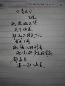 10、本诗给予诗人的启示:“把不同的事与物,写出反向的感觉来,离不开自觉的意识与观念”;