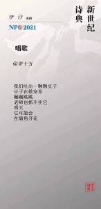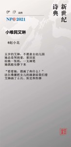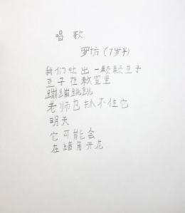 Ye Zihan, born in May 2015, goes to school in Datian county, Sanming city, Fujian province. Member of the Phoenix Song poetry society at her school. Her poems have been published in various magazines and media in Fujian, Hong Kong etc. 《新诗典》小档案:叶梓涵,女,出生于2010年5月,福建省三明市大田县实验小学五年级学生。大田实验小学闽中·凤鸣诗社成员。是个活泼开朗,乐观向上的女孩,喜欢阅读、写作,擅长朗诵、主持。现已创作一百多首童诗,作品发表于香港《流派诗刊》等刊物,鸿羽之光、童诗有约、唐小诗、诗锚、新童诗、闽中·凤鸣诗社等微信公众号平台。