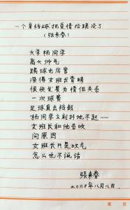 标签:ball, class monitor, football, groin, infatuation, injury, love, man, NPC, poetry, sigh, soccer, students, woman, Zhang Laichun, 张来春, 新世纪詩典