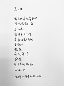 况禹点评《新诗典》里所《怎么办》:带了喜悦的一首诗,发芽的土豆,通常会被人带了恶感描述,妙解“发了芽的妈妈”,一下子,生命感出来了。本诗以孩子借喻时用的是在这里趋近于无性别差异的阳性词“他们”,用“妈妈”喻指时,用了“她们”,微妙的转换里,生长的过程也显现出来了。本诗秉持了里所诗里一贯的细腻,又呈现出了语言上的新变化。