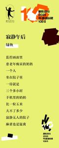 磨铁诗歌奖·2023年度最佳诗歌100首|绿鱼《寂静午后》入选理由:这是一首情感浓度很高的诗歌,却并未直接写及一个情字。“麻雀也是猛禽”,一个极具力量感的意象,反衬着衰老的静止,活着的、会动的,就是凶猛的,而患老年痴呆症的奶奶已经三个小时一动不动了。这个意味复杂的意象,就足以撑起一首诗了,更何况绿鱼还通过克制的叙述,以一种独特的观看视角,以小和大的对比,呈现了奶奶的晚年状态,令人揪心难忘。(磨铁读诗会/里所)