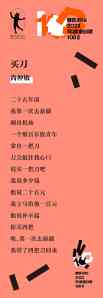 磨铁诗歌奖·2023年度最佳诗歌100首|尚仲敏《买刀》入选理由:一首幽默的诗光有好笑的内容还不够,还得加入恰当的语言和诗人的个性,要不然很容易写成一个段子。尚仲敏很擅长写具有高级幽默感的诗,他的生活为他提供了源源不断的素材,他的个性、他写诗的语言和口气,让他的诗有着独一份的鲜活。《买刀》这首诗,讲的本来是一个有点沉重的故事,但是尚仲敏松弛的叙述,和他最后两行充满个性的点睛之笔,让这个故事充满了黑色幽默,强大的诗性一挥而就。(磨铁读诗会 / 方妙红)