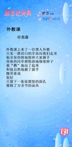 发表在 November 2015, NPC, October 2015, poetry, Translations, Yi Sha, 伊沙 | Leave a Comment »