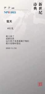 伊沙推荐:为什么诗人作为文学家的那一面是需要反复强调的?而作为思想家的这一面则强调得少?因为后者大诗人才需要。尤其是当"事实的诗意"确立之后,当代诗人们的综合思辩力集体下降了,严力又一次凸显出来,形象的思辨本来就是他的强项,本诗在思考疫年之中诗歌存在的意义,在8月下半月推荐诗中当居亚军。
