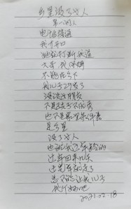 In English I can talk about writing in any language, also English, while being away from the environment. I wrote this poem in Chinese in response to what happened last year and this year at a certain place in China. But the absurd aggression, the senseless destruction and ruin could also be Trump and Musk’s ‘work’, right? Or Putin and so on.